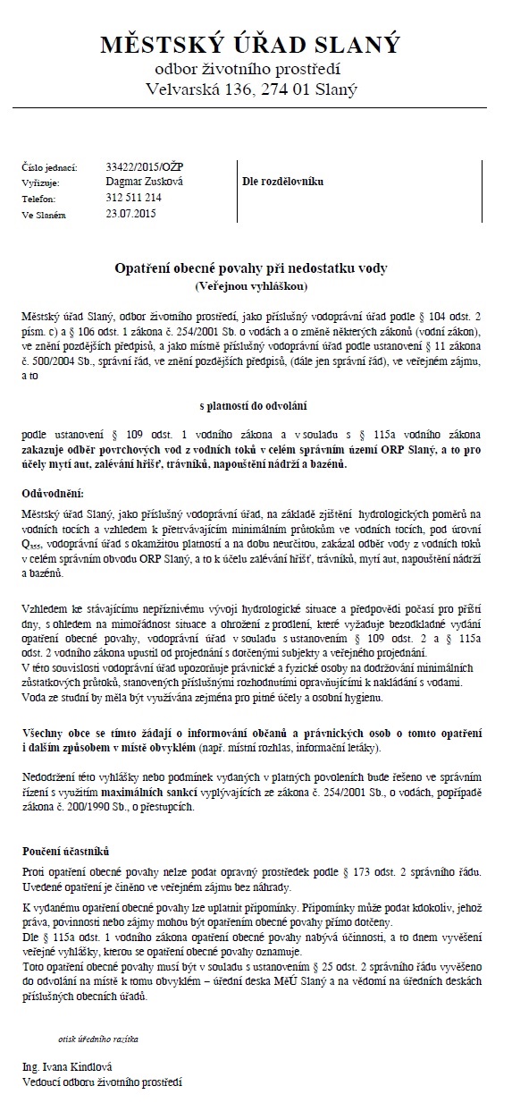 S okamžitou platností (od 23.07.2015) do odvolání se zakazuje: