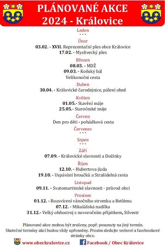 Úvod > Obec > Aktuality > Plánované akce na rok 2024