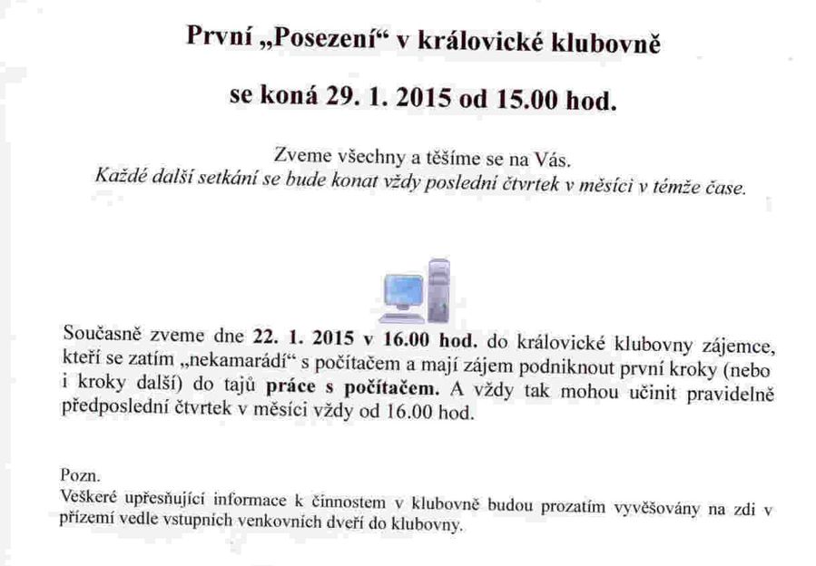 Úvod > Obec > Aktuality > První "posezení v královické klubovně" 29.01. a 22.01.2015 první kroky do tajů počítače