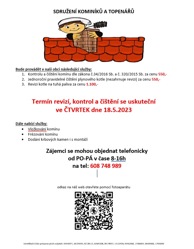 Úvod > Obec > Aktuality > Sdružení kominíků a topenářů