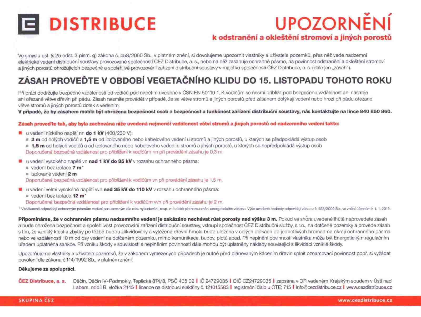 Upozornění k odstranění a okleštění stromoví a jiných porostů