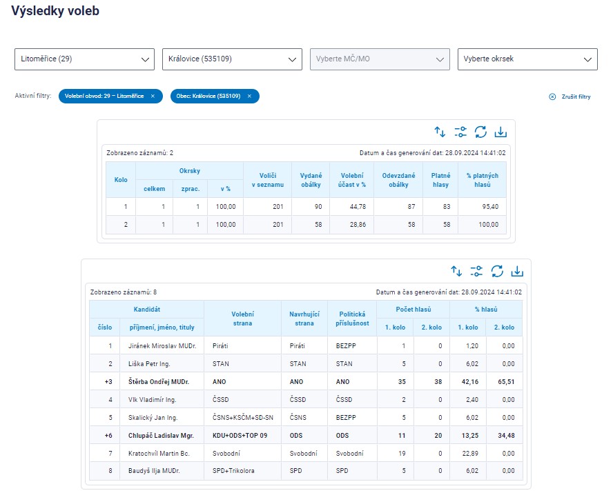 Úvod > Obec > Aktuality > Výsledky voleb do Senátu Parlanetu ČR II. kolo, ve dnech 27.-28.9.2024