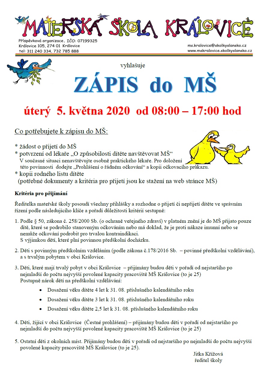 prostřednictvím e-mailové pošty oukralovice@volny.cz