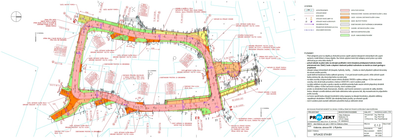 a) Předmětem návrhu stavby je rekonstrukce místní obslužné komunikace v obci Královice v lokalitě U Rybníka.