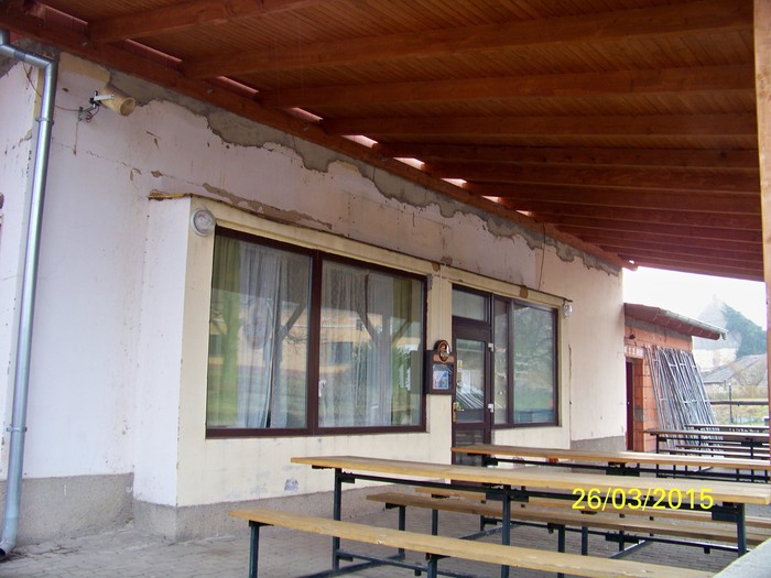 - zateplení obvodového pláště budovy čp. 27 (hospoda a sál) , zateplení střechy (půdy) sálu a výměna veškerých dřevěných výplní otvorů oken a dveří za nové z plastových profilů